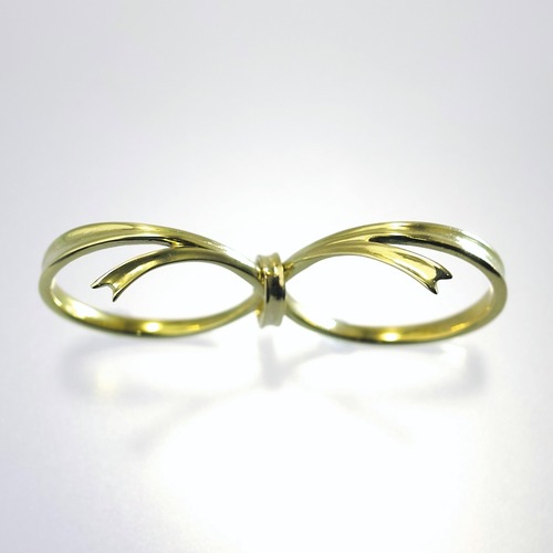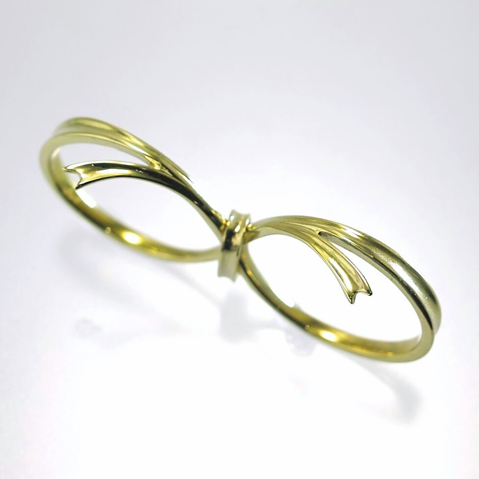 【inGod jewels】2フィンガー リング『しあわせりぼん』18金イエローゴールド