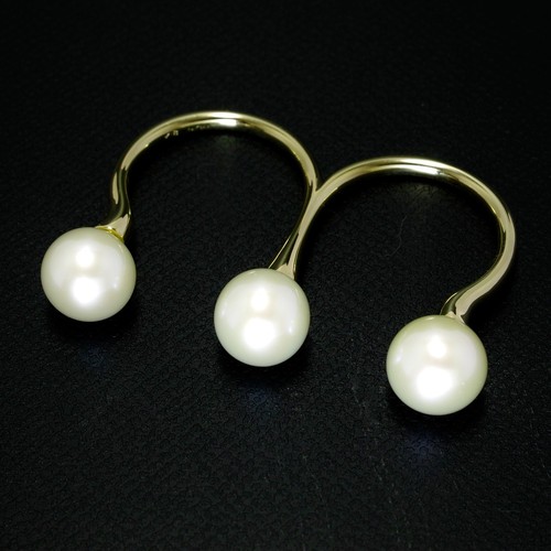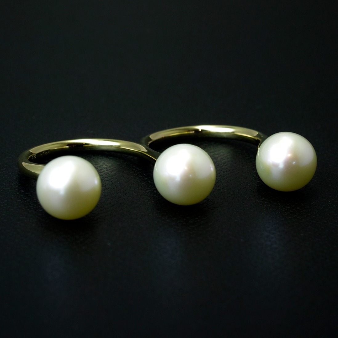 ● 巻が厚く照りが美しい大粒8mm珠のアコヤ真珠を3粒使用した豪華な2フィンガー ヌードリングです。
